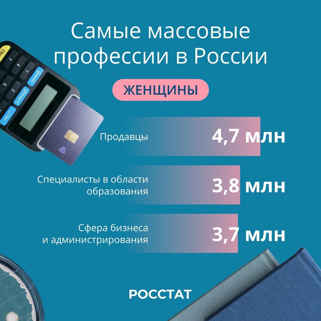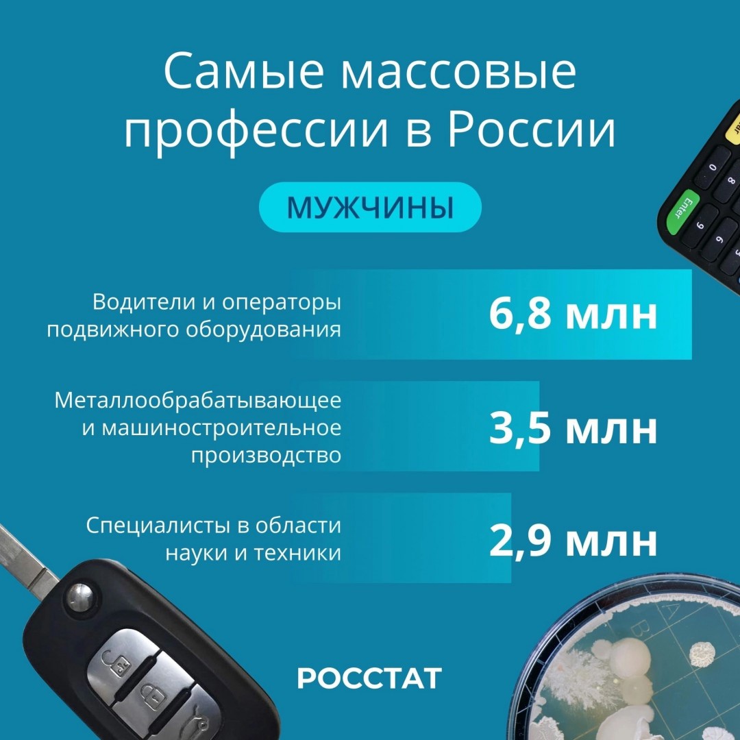 Больше всего мужчин работает водителями и операторами подвижного оборудования – 6,8 млн. Женщины чаще работают в сфере розничной торговли – 4,7 миллиона.